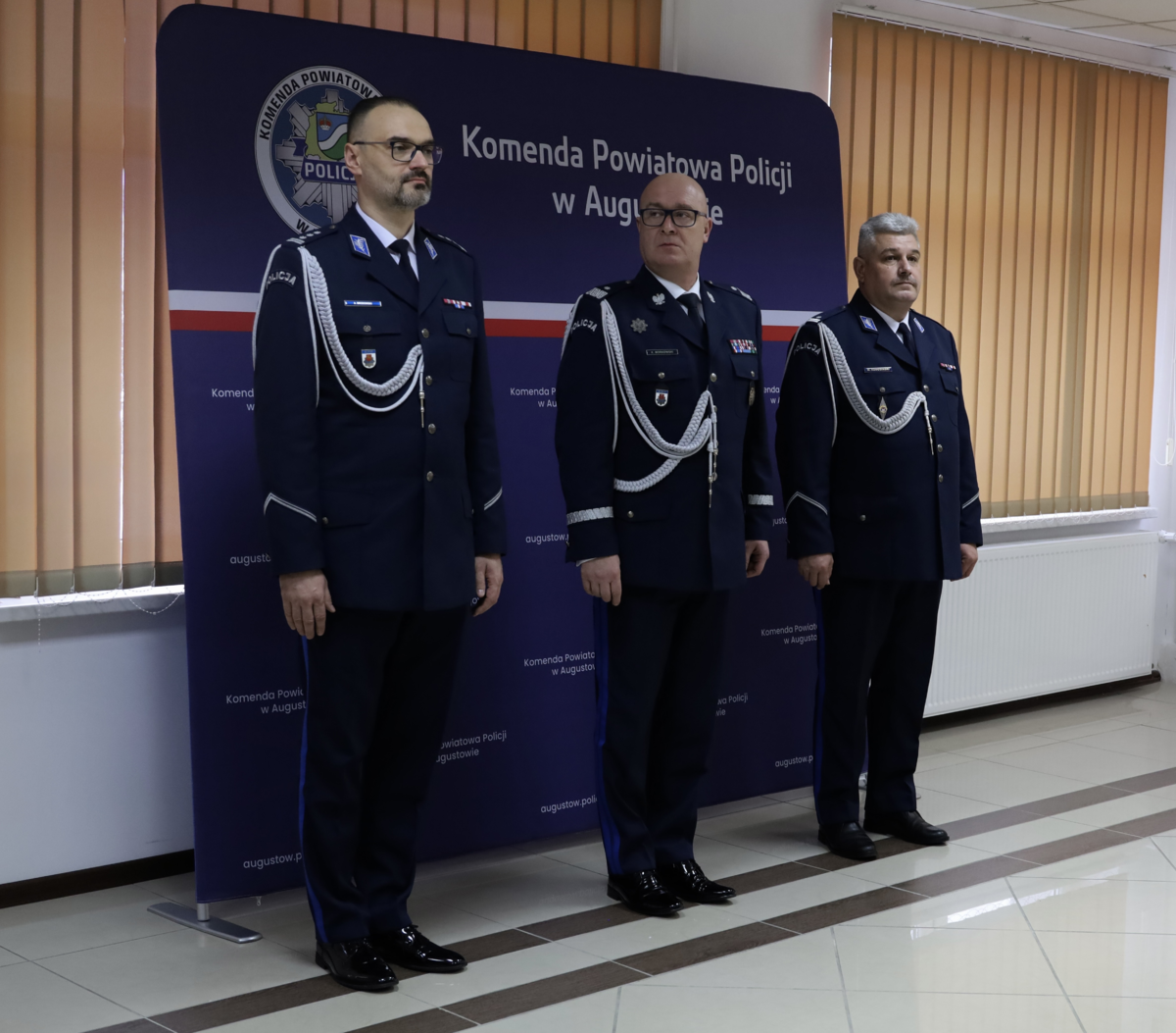 W Komendzie Powiatowej Policji w Augustowie odbyła się uroczystość związana ze zmianą szefa augustowskich policjantów. Ze Sztandarem Komendy Powiatowej Policji w Augustowie przywitał się obejmujący stanowisko inspektor Adam Brodowski. Uroczystego wprowadzenia dokonał Komendant Wojewódzki Policji w Białymstoku nadinspektor Kamil Borkowski.