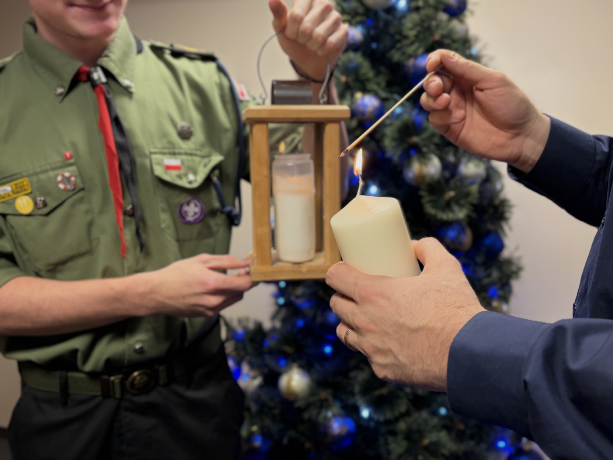 Policjantów odwiedziła III Augustowska Drużyna Wędrownicza "Rosomaki" z Hufca Związku Harcerstwa Polskiego w Augustowie. Podczas tej, już tradycyjnej wizyty Komendant Powiatowy Policji w Augustowie inspektor Adam Brodowski przyjął od harcerzy symboliczne światełko. Spotkanie było doskonałą okazją, aby złożyć sobie najlepsze życzenia świąteczno-noworoczne. Polska jest jednym z ogniw betlejemskiej sztafety niesienia bożonarodzeniowego płomienia wprost z Groty Narodzenia Pańskiego w Betlejem. Betlejemskie Światło Pokoju wędruje po kraju od 1991 roku. Związek Harcerstwa Polskiego otrzymuje Światło od słowackich skautów, a harcerki i harcerze przekazują je dalej do Rosji, Litwy, Ukrainy i Białorusi oraz do Niemiec i Danii.