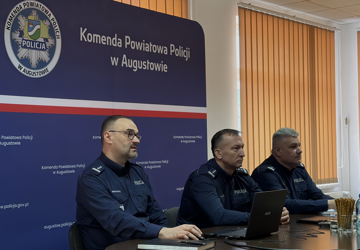 Przedstawienie stanu bezpieczeństwa w powiecie, omówienie efektów pracy augustowskich policjantów za rok ubiegły oraz plany na najbliższe 12 miesięcy – to główne zagadnienia dzisiejszej odprawy, której gospodarzem był Komendant Powiatowy Policji w Augustowskie inspektor Adam Brodowski. Podczas spotkania podkreślono, że augustowska komenda zajęła drugie miejsce pod względem uzyskanych wyników w garnizonie podlaskim. W spotkaniu uczestniczył Zastępca Komendanta Wojewódzkiego Policji w Białymstoku inspektor Mariusz Kryszkowski, przedstawiciele władz samorządowych, prokuratury, policjanci i pracownicy augustowskiej komendy oraz goście ze służb mundurowych. Komendant Powiatowy Policji w Augustowie inspektor Adam Brodowski i I Zastępca Komendanta Powiatowego Policji w Augustowie podinspektor Marek Komosiński ocenili efektywność działań augustowskiej komendy w 2025 roku oraz przedstawili priorytety i zadania, jakie stoją przed jednostką w nowym 2026 roku. Następnie omówili wyniki pracy poszczególnych pionów. W 2025 roku, na terenie powiatu augustowskiego wskaźnik wykrywalności ogółem wyniósł 83,82%. Mundurowi odnotowali w minionych 12 miesiącach: 426 przestępstw kryminalnych, 111 przestępstw drogowych, 38 przestępstw narkotykowych i 41 gospodarczych. Augustowscy śledczy mogą pochwalić się wysoką skutecznością wykrywania przestępczości kryminalnej, która kształtuje się na poziomie 83,21%. Zapewniło to jednostce III miejsce w województwie. W kategorii 5 przestępstw najbardziej uciążliwych społecznie wskaźnik wykrywalności wyniósł 72,22%, a policjanci odnotowali 82 przestępstwa w tych kategoriach. Funkcjonariusze w minionym roku zabezpieczyli również blisko 5 kilogramów narkotyków. Na terenie powiatu augustowskiego mundurowi podjęli ogółem 5259 interwencji, a szybkość reakcji na interwencje pilne wyniosła 7 minut 44 sekund. Funkcjonariusze zatrzymali również 107 sprawców na gorącym uczynku. Na drogach powiatu augustowskiego doszło do 13 wypadków drogowych. Liczba ta utrzymała się na poziomie roku wcześniejszego. W ich wyniku śmierć poniosły cztery osoby – tyle samo co w 2024 roku. Zmniejszyła się natomiast liczba osób rannych z 14 w roku 2024 do 11 w roku ubiegłym. Odnotowano również 467 kolizji, mniej o 18 niż w roku poprzednim. Mundurowi z augustowskiej komendy otrzymali dwa nowe radiowozy. Jeden z pojazdów – oznakowany samochód marki Suzuki został zakupiony przy współfinansowaniu samorządu Powiatu Augustowskiego, który pokrył 50% kosztów zakupu. Oznakowane Suzuki s-cross trafił do policjantów z Posterunku Policji w Sztabinie. Radiowóz ten zostały wyposażone w benzynowy silniki o pojemności 1,373 cm³ oraz napęd 4x4. Koszt zakupu pojazdu to blisko 181 988 złotych. Drugi pojazd Ford Transit Custom, trafił do jednostki w ramach działań modernizacyjnych realizowanych przez Komendę Główną Policji. Radiowóz wyposażony jest w 170 konny, dwulitrowy silnik diesla. Samochód został przystosowany do przewozu psów służbowych i został przeznaczony do codziennego użytkowania przez ich przewodników. Całkowity koszt zakupu pojazdu wyniósł blisko 400 tysięcy złotych. Komendant Powiatowy Policji w Augustowie omówił również inwestycje i plany na przyszłość. Podziękował także samorządowcom oraz przedstawicielom innych służb za dobrą współpracę w minionym roku, podkreślając ważność i konieczność wspólnego działania na rzecz poprawy bezpieczeństwa mieszkańców powiatu. Głos zabrali także przybyli goście, którzy podziękowali za dobrą pracę funkcjonariuszy Komendy Powiatowej Policji w Augustowie.