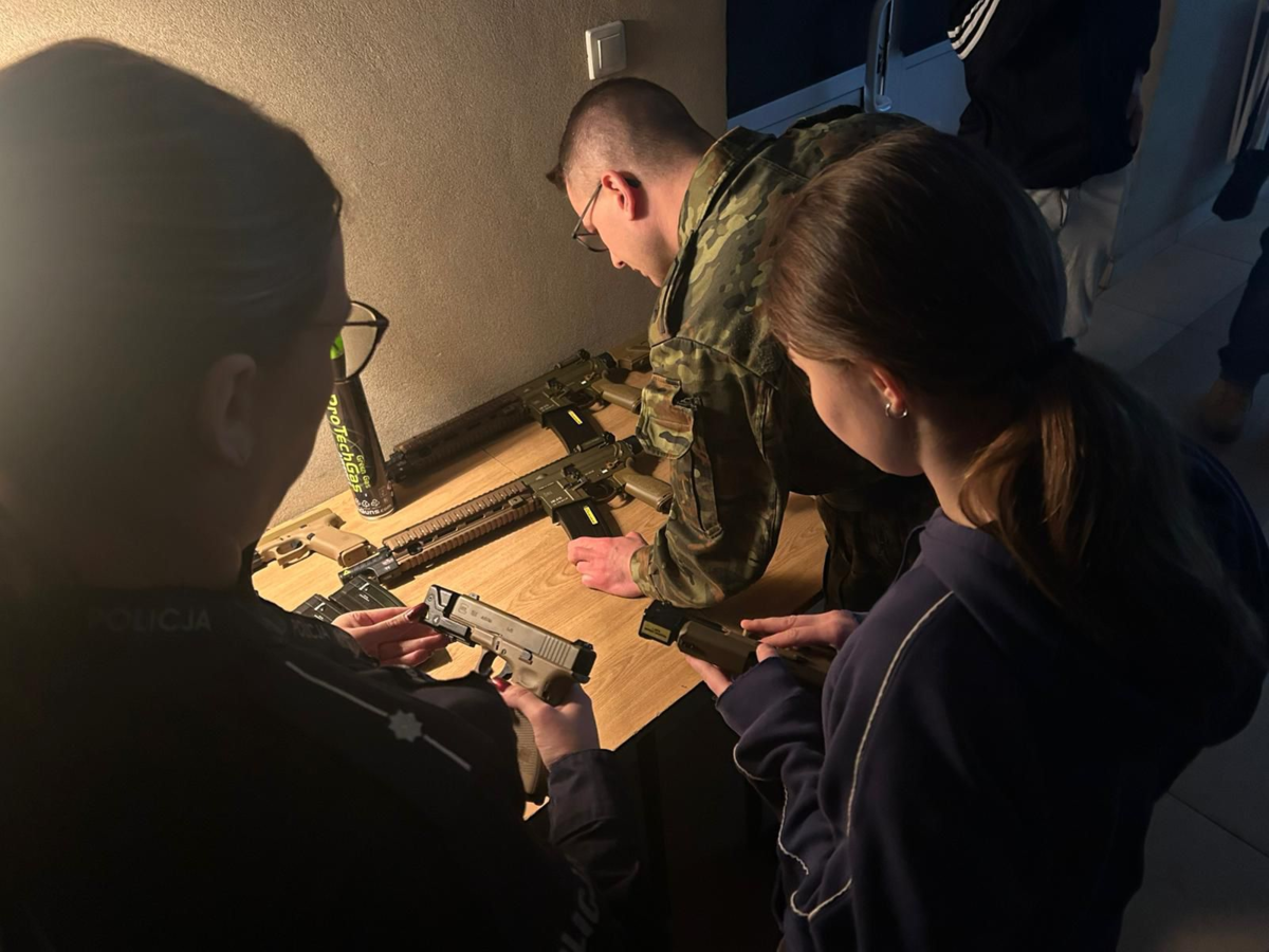Uczniowie klasy mundurowej wzięli udział w wyjątkowych zajęciach na strzelnicy laserowej, mieszczącej się w Gminnym Ośrodku Kultury w Lipsku. Spotkanie dostarczyło im nie tylko wielu emocji, ale przede wszystkim cennej wiedzy oraz praktycznych umiejętności. Podczas treningu młodzież zapoznała się z zasadami bezpiecznego posługiwania się bronią, podstawami celowania oraz właściwą postawą strzelecką. Zajęcia miały charakter szkoleniowy, nie zabrakło jednak zdrowej rywalizacji i dobrej zabawy. Każdy uczestnik mógł sprawdzić swoją celność, koncentrację oraz opanowanie - cechy niezwykle ważne w służbach mundurowych. W wydarzeniu uczestniczyli również przedstawiciele Policji i Straży Granicznej. Spotkanie było doskonałą okazją do rozmów z funkcjonariuszami, którzy chętnie dzielili się swoim doświadczeniem i opowiadali o specyfice pracy. Tego typu inicjatywy pozwalają uczniom lepiej poznać realia służby oraz rozwijać zainteresowania związane z przyszłą karierą zawodową.