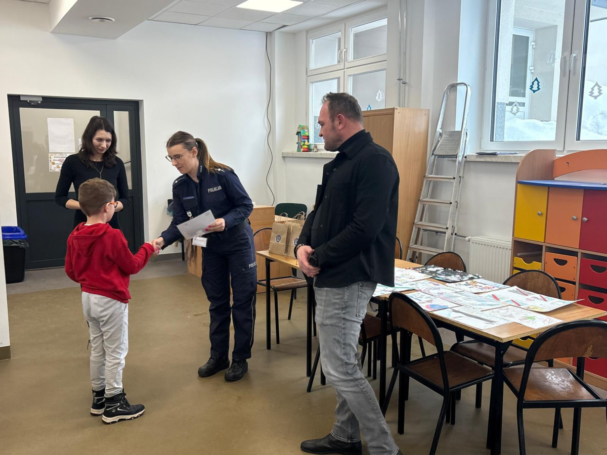Konkurs odbył się przy współpracy dyrekcji Szkoły Podstawowej w Płaskiej i skierowany był do uczniów klas I-III. Jego celem było popularyzowanie oraz utrwalanie wiedzy na temat bezpiecznych zachowań podczas ferii zimowych, a także kształtowanie właściwych nawyków już od najmłodszych lat. W rozstrzygnięciu konkursu uczestniczyli przedstawiciele Komendy Powiatowej Policji w Augustowie wspólnie z Zastępcą Wójta Gminy Płaska Panią Anną Ciężkowską -Zalewską, którzy wręczyli nagrody młodym laureatom i pogratulowali pomysłowości. Spotkanie było również okazją do przypomnienia najmłodszym , jak ważna jest umiejętność właściwego reagowania w sytuacjach zagrożenia. W związku z obchodzonym 11 lutego Europejskim Dniem Numeru Alarmowego 112 policjantka przypomniała dzieciom, kiedy należy korzystać z tego numeru oraz jak prawidłowo wezwać pomoc. Tego typu działania edukacyjne pomagają budować świadomość najmłodszych i uczą, że bezpieczeństwo w dużej mierze zależy także od nas samych.